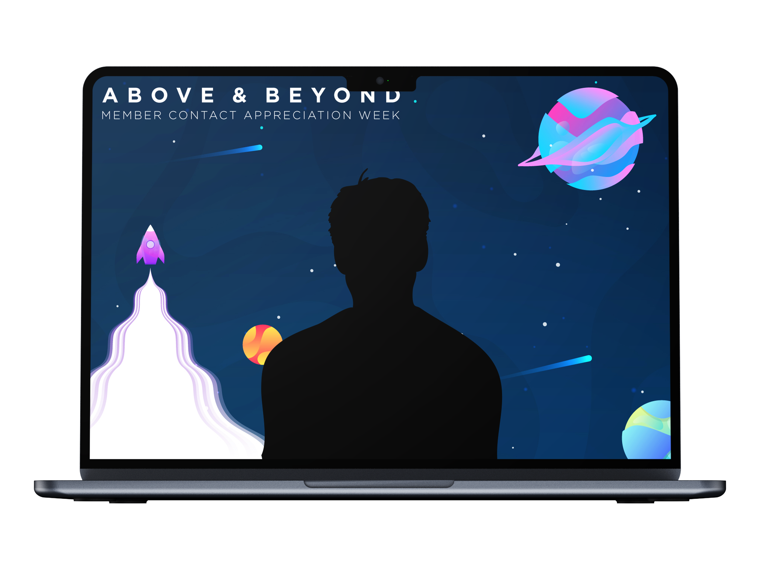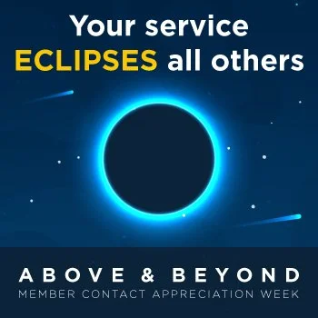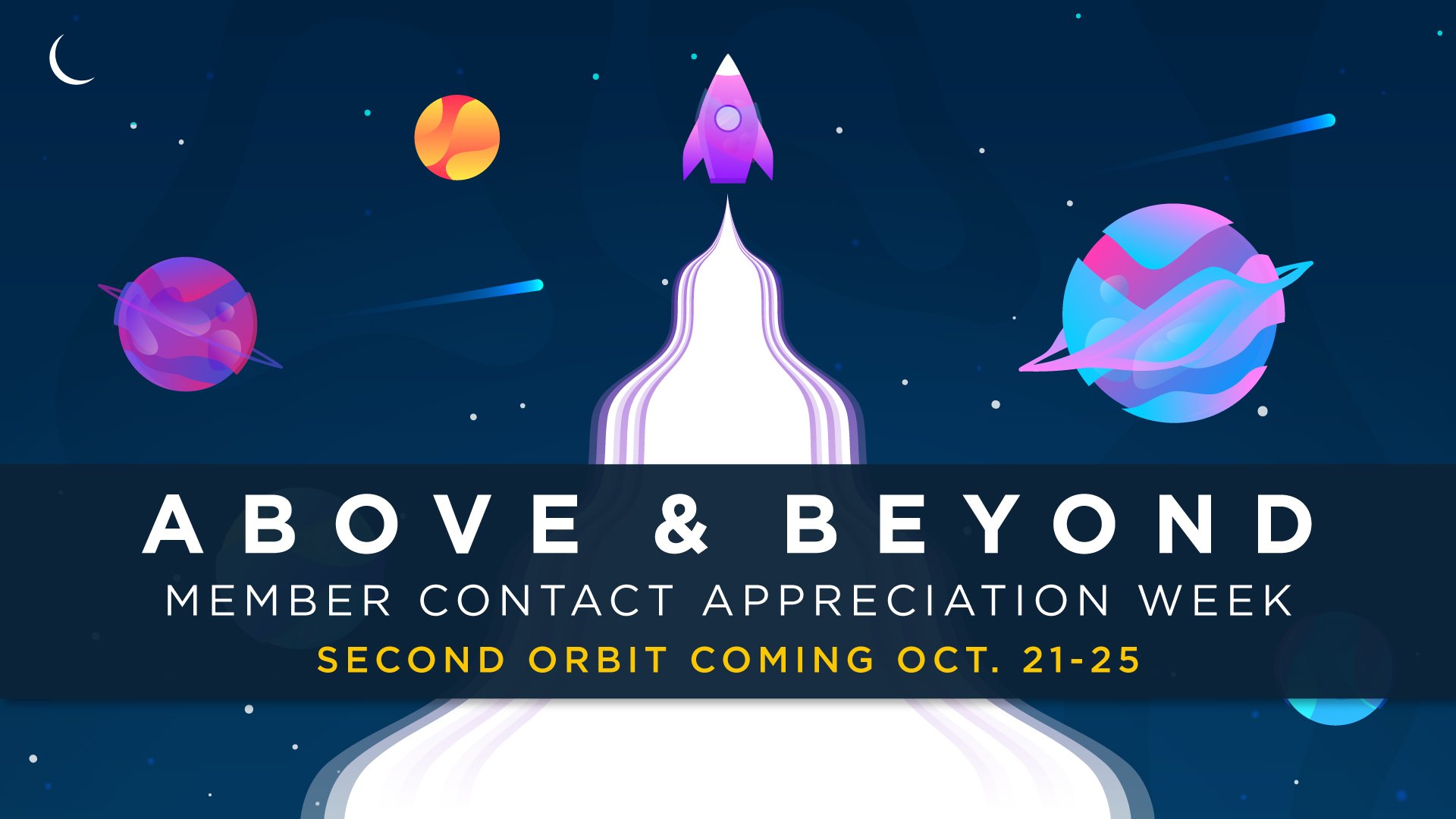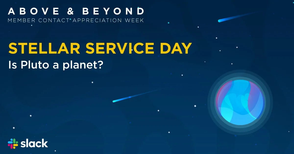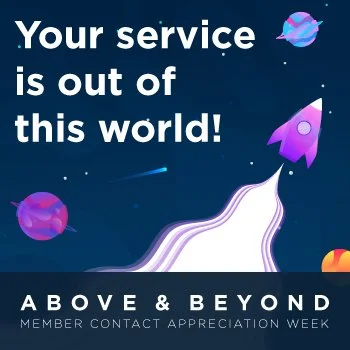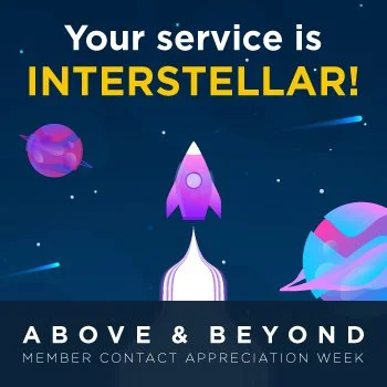 A fully self-contained internal campaign celebrating the company's front-line member contact employees during a dedicated week of appreciation. Three theme concepts were pitched — Olympic, Rock Star, and Space — with the space theme selected for its versatility and natural alignment with the "above and beyond" messaging. Because this was completely internal, there was significant creative liberty to stretch beyond standard brand guidelines and fully commit to the concept while still incorporating key brand elements such as the colors and typography.